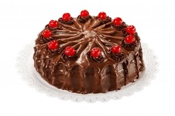 Massa de chocolate, creme especial, morango e creme de leite pasteurizado (nata)