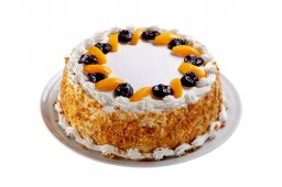 Massa pão de ló, creme de leite pasteurizado(nata), pêssego e creme mineiro