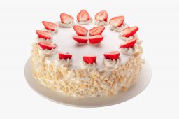 Massa pão de ló, creme especial, morango e creme de leite pasteurizado (nata)