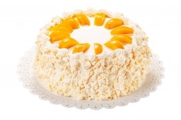 Massa pão de ló, creme de leite pasteurizado(nata), pêssego e creme mineiro
